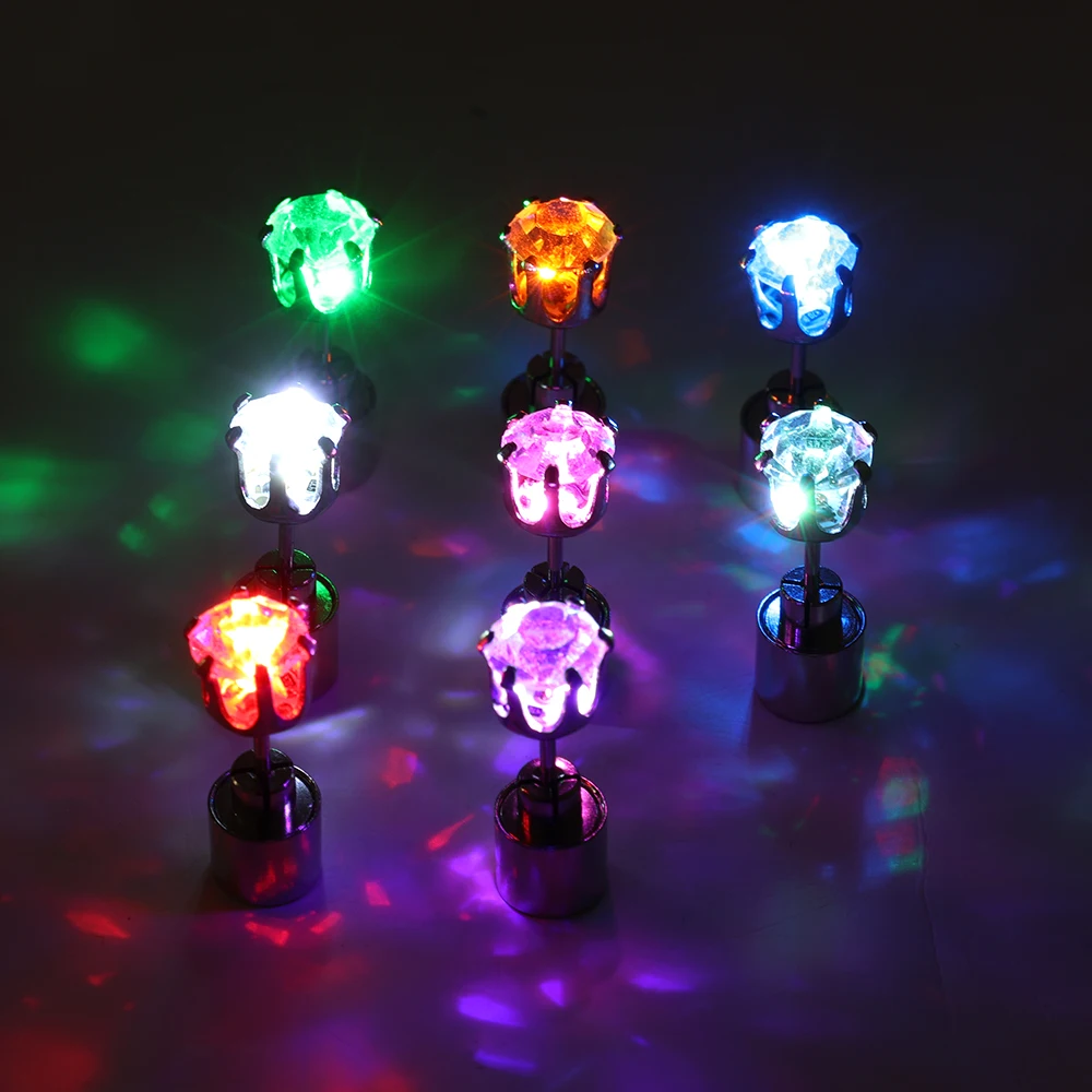 1/2Pcs LED Light up Ear Stud Earrings Colorful Flashing Zircon Earring Stainless Steel Party Night Bling Ear Ring Studs Jewelry