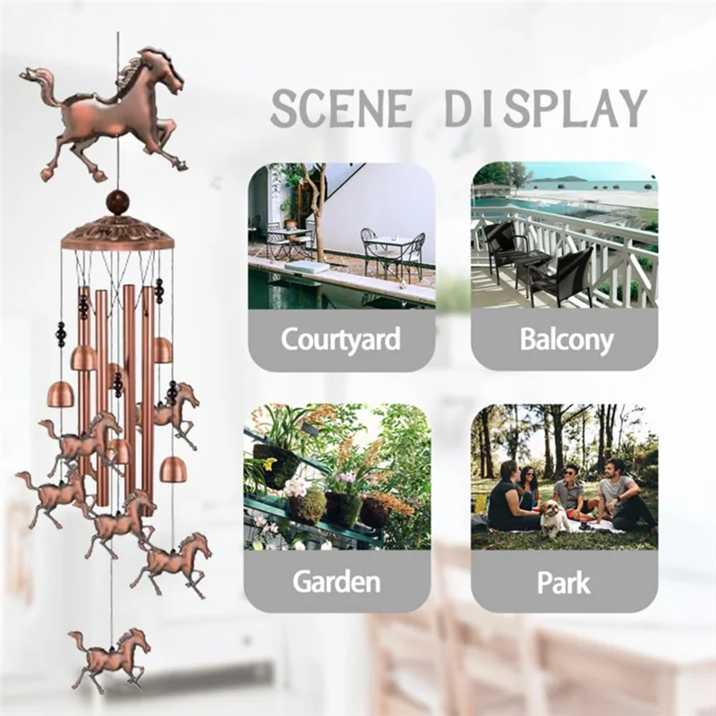 [Beautiful Home Decoration]Purely handmade copper horse wind chimes are lightweight and easy to hang. If the garden in your heart has become dull and trivial, our wind chimes can provide a vibrant place for your garden/courtyard/balcony/window/corridor/entertainment place. It can be used to decorate a girl's bedroom, children's bedroom, living room, window, garden, terrace, adding beautiful melodies to the environment. It can effectively commemorate special people or important memories.